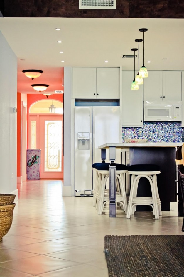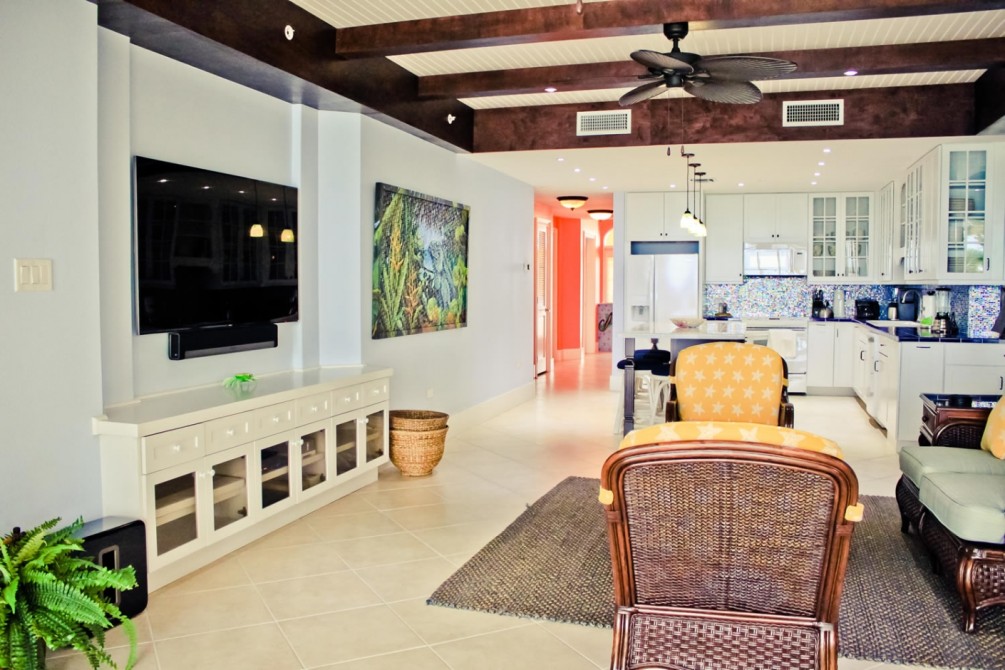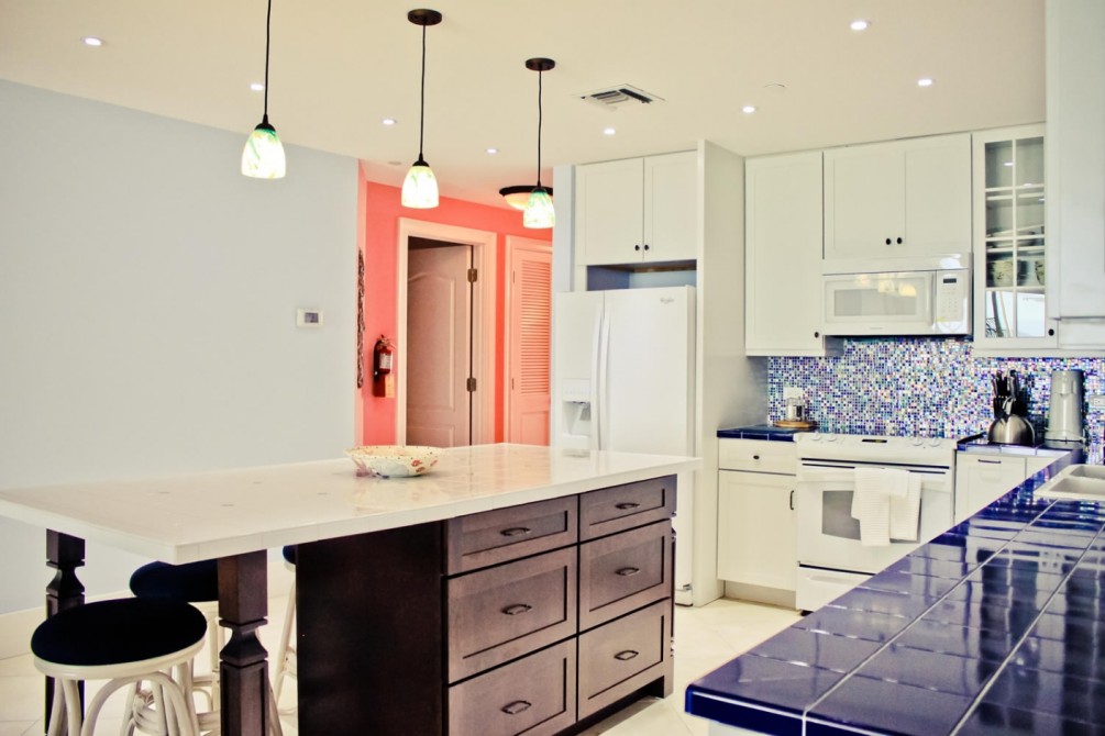 Naturally this build faced many challenges, working within a complex that hosts many short term rentals who don’t wish for their holidays to be disturbed, combining two units involved the removal and replacement of structural walls in such a way that did not in any way affect the integrity of the building as a whole. The design was the fun part; combining two kitchens into one large open plan kitchen living space that wrapped around the middle of what would have been the separating walls so that no one would guess that this fantastic unit used to be two units separately.